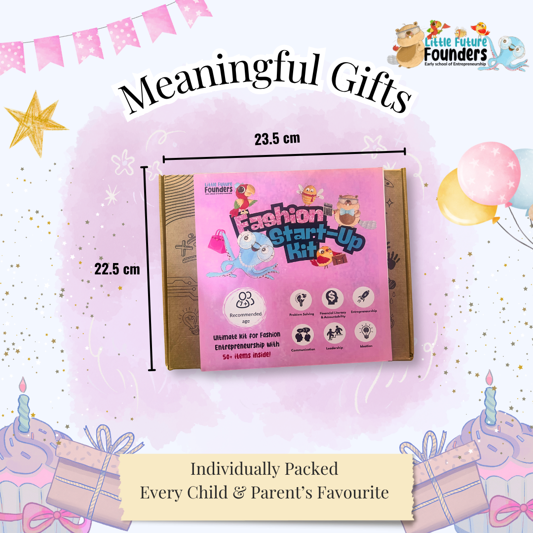 The Fashion Start-Up Kit is designed to take your child’s love for fashion beyond the usual hobby box—transforming creativity into a real, hands-on business journey.